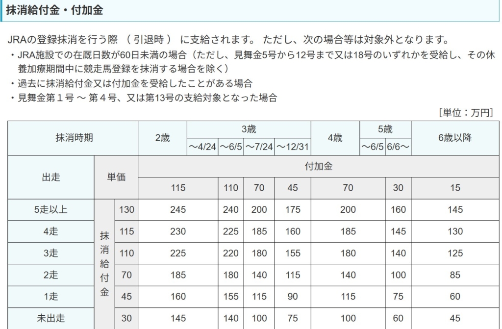 少しおかしな話ですが、競走馬登録を抹消すればJRAから給付金が貰えます。